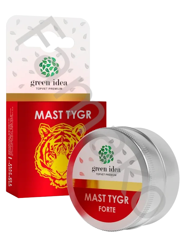Mast TYGR FORTE je velice silná, díky základu z vazelíny zůstává dlouho na pokožce, kde intenzivně účinkuje a voní. Obsahuje přírodní silice (máta, kajeputový olej, bazalka, hřebíček, skořice, eukalyptus), kafr a menthol, jejichž vůně a zahřívací efekt mají vliv na uvolnění napětí.